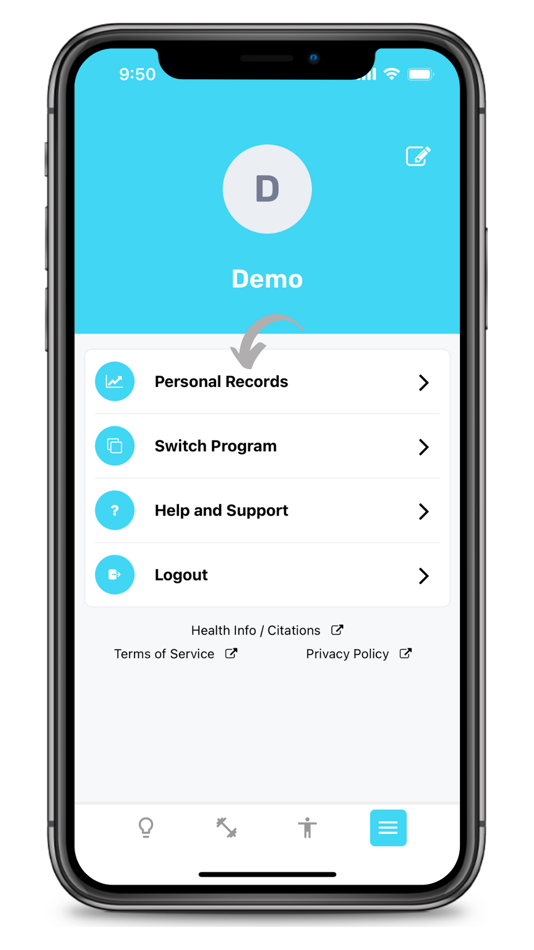 1. Tap on the icon on the bottom right of the app and tap "Personal Records."