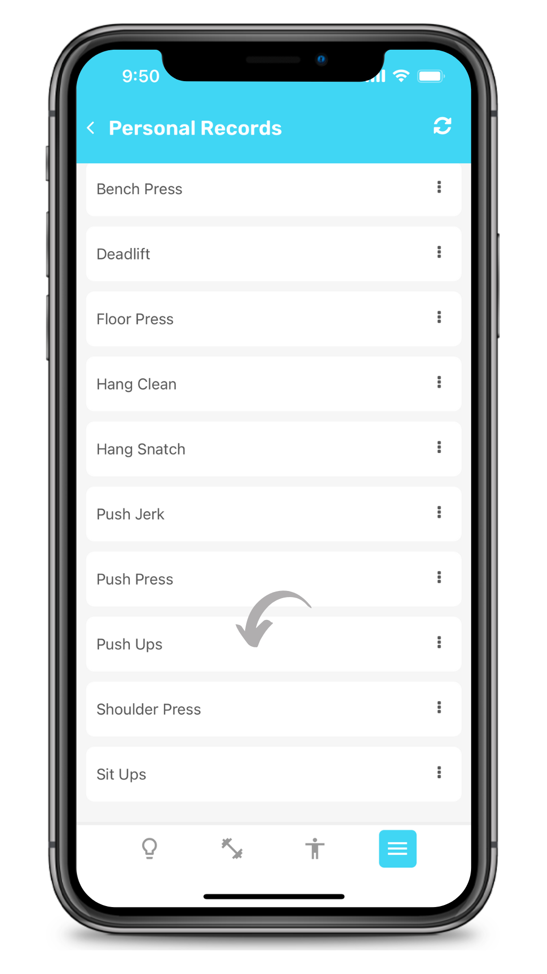 2. Tap on the exercise you're recording a new record for.